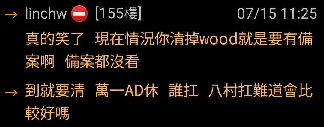 推 kingbar815: 但wood被擋拆後就不知道去哪了 07/15 16:24