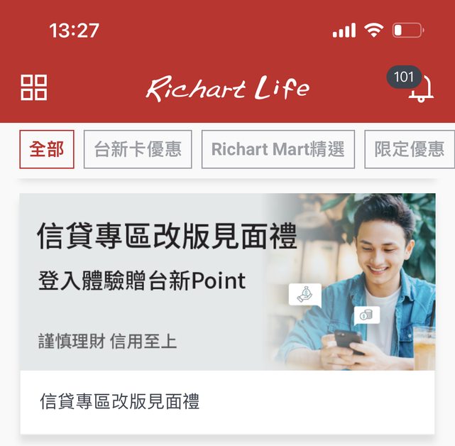 登入Richart Life app信貸專區領台新Point 2點 https://i.imgur.com/AezQUYg.png