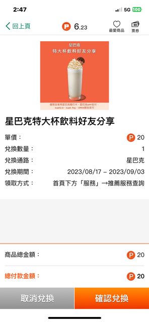 推 wailman: 這次換點活動誠意不錯,昨天買星巴克找優 118.231.184.88 08/19 20:59