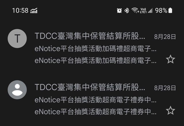 好像沒人PO,收到二封中獎電郵,才知道集保所有這個活動,200元拿去買了全家咖啡還不錯