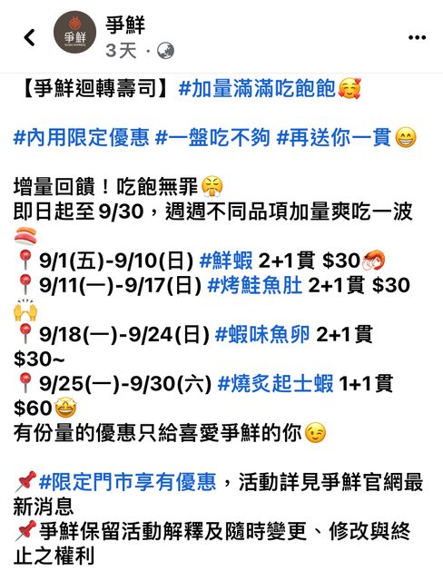 filiaslayers: 但吃爭鮮我不如去吃壽司郎... 220.133.46.215 09/04 16:20
