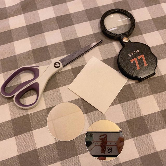 裸銀鏡片、泡棉膠、剪刀