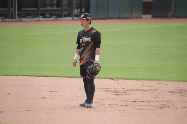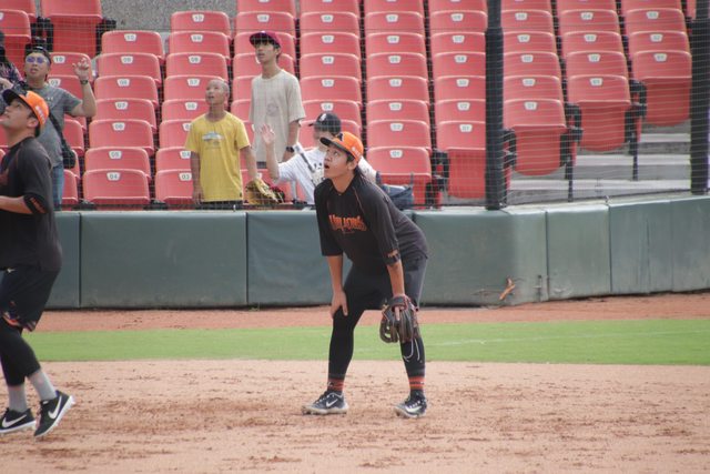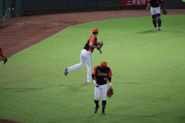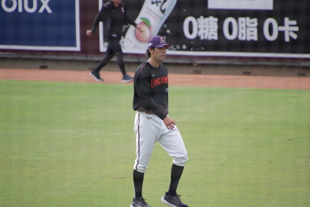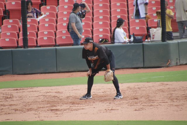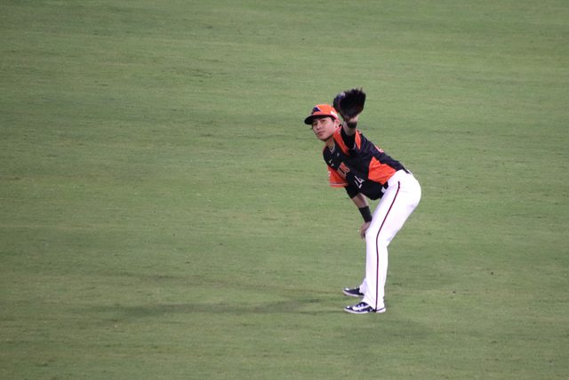 小豪盯著內野高飛球 嘴巴張很大喔~