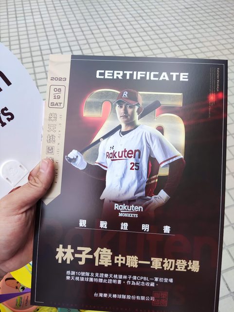 內野和大樂區限定的林子偉觀戰證書