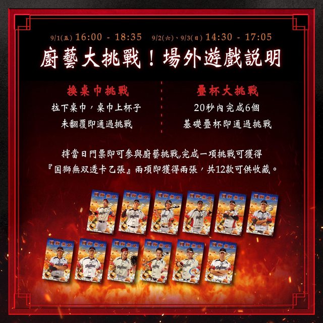 完成一項挑戰可獲得国獅無双透卡乙張,完成兩項即可獲得兩張,共12款可收藏。