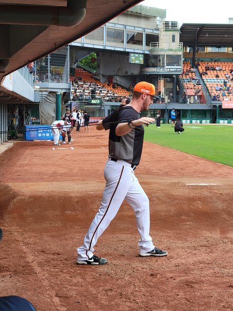 在等待球員進來練打前
