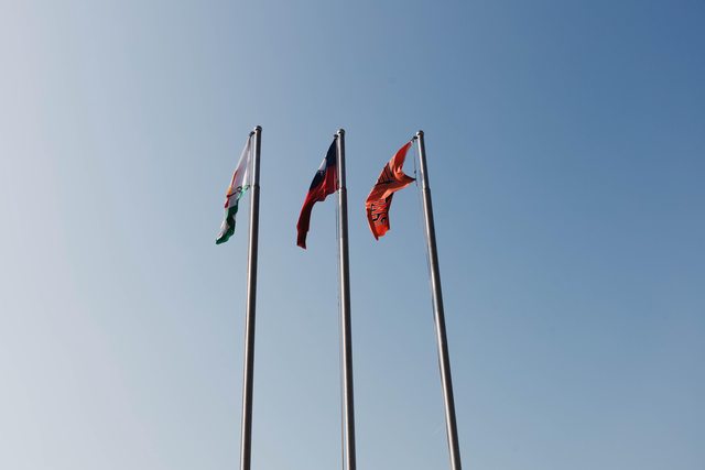 球場也掛上企業和球隊的旗幟