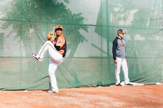 大餅在跟李嘉祥討論投球動作