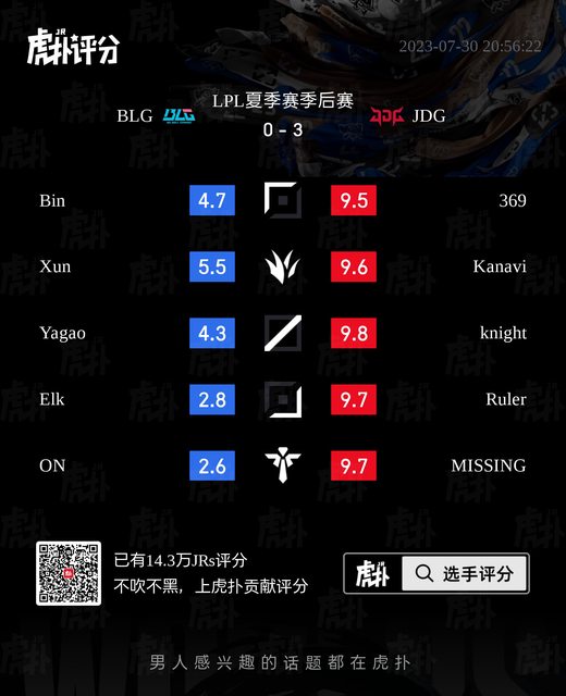 標題[閒聊] BLG vs JDG 虎撲賽後評分表