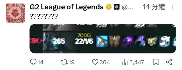 → Minguo1016 : G2還在輸出 05/19 19:05