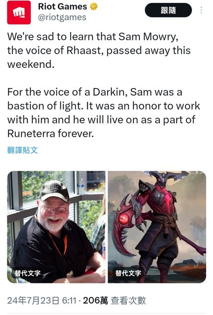 標題[R.I.P] Sam Mowry去世