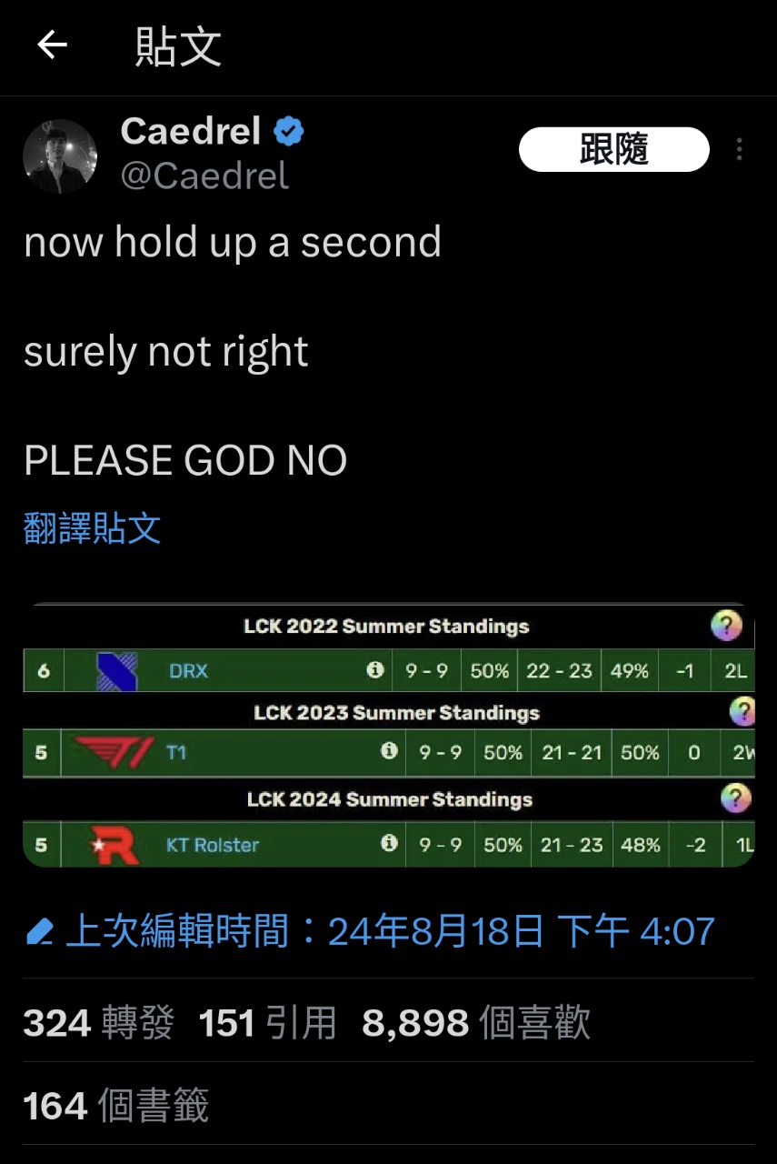 推 noctilucous : 4樓那個Caedrel的貼文 我信了 KT世界冠軍 08/19 12:40