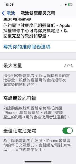 長輩換機電池77%