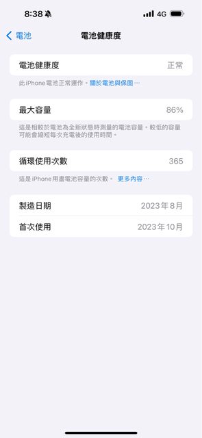 電池健康度86%