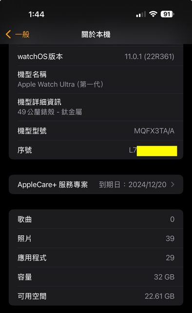 1.AppleCare+ - 保固至今年 2024/12/20