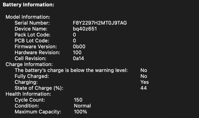 [電池] 健康度100% 循環150 (2024.10.31) 充電方式 不超過80%