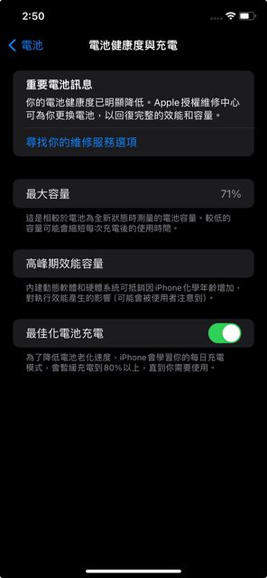 3. 電池健康度71%(如圖)