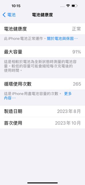 殼(imos);電池91%、循環次數265