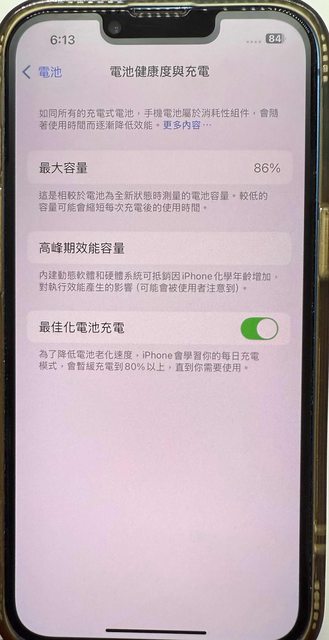 電池健康度86%