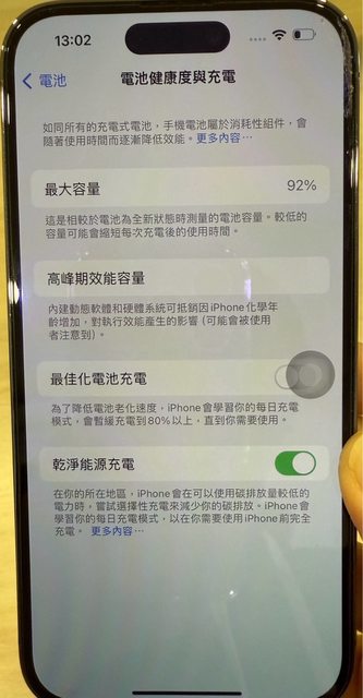 電池健康度92%,功能正常。