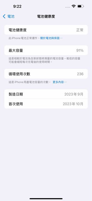 外觀近全新無傷,拿到新機的時候就有包膜、保護貼、鏡頭貼加軍規手機殼保護著。膜因 要拍照已拆,外殼因為透明殼泛黃所以沒有附贈,鏡頭貼完好,有2片全新的防窺保護貼 會附贈。 電池健康度91%,循環236。如圖有附上實體拍攝機身,以及購買證明資料供參考。