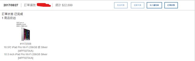 1. 2017 iPad Pro 10.5 WiFi 256GB 銀色 (MPF02TA/A)