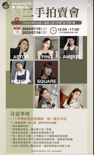 上禮拜看到pingping、Astor、夢露還有其他網紅要一起舉辦二手拍