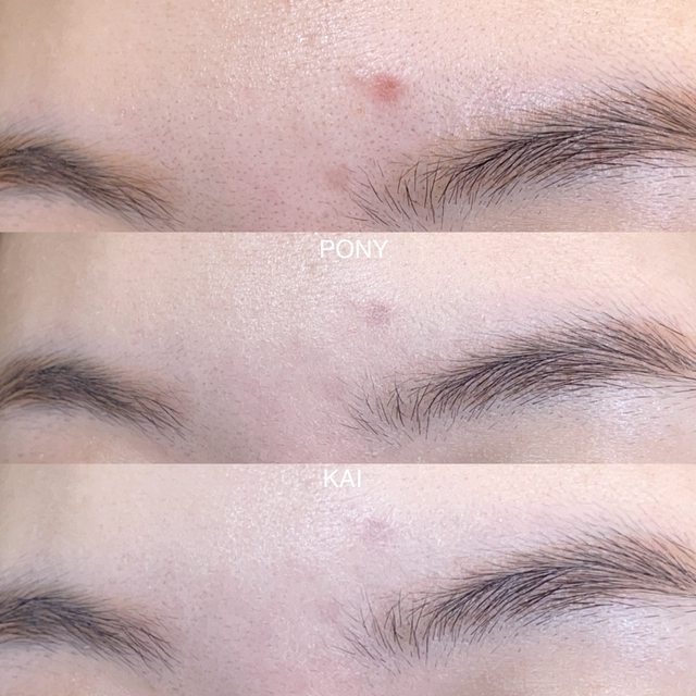 Pony的光澤度會大於Kaibeauty,所以也會比較顯毛孔