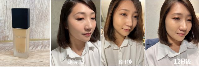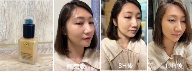 從左到右是素顏,完妝後,8小時過後再來最右邊就是下班後