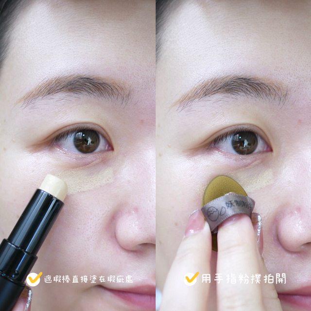 我的上妝方式是直接塗在要遮瑕的地方,然後用比較小、硬一點的粉撲拍開
