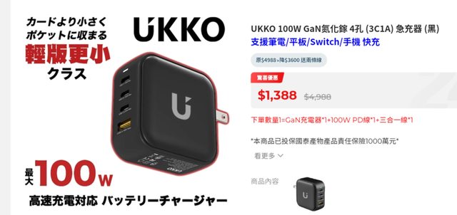 → darkinly : 跟充電線, 所以這組只能當一般快充, 沒辦法急速充 07/11 18:16