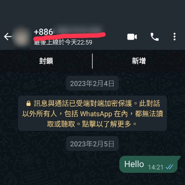whatsapp可以接收非聯絡人的訊息,對話中對方的顯示名稱會是對方的電話號碼,而電話號