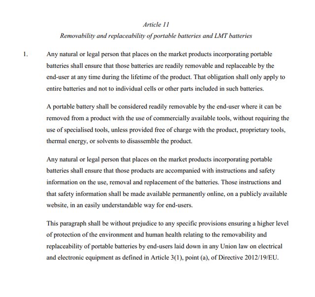 : 2019年1月1日起,所有電子產品(包括手機),都要能方便維修、更換電池,禁止製造