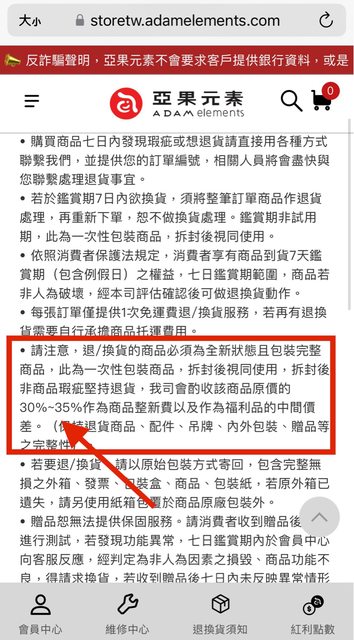 換購,而要退貨的話因為我拆封過所以須負擔30%的整新費。
