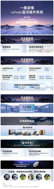 一張圖讀懂vivo藍河作業系統:天生更智慧、天生更安全、天生更流暢。