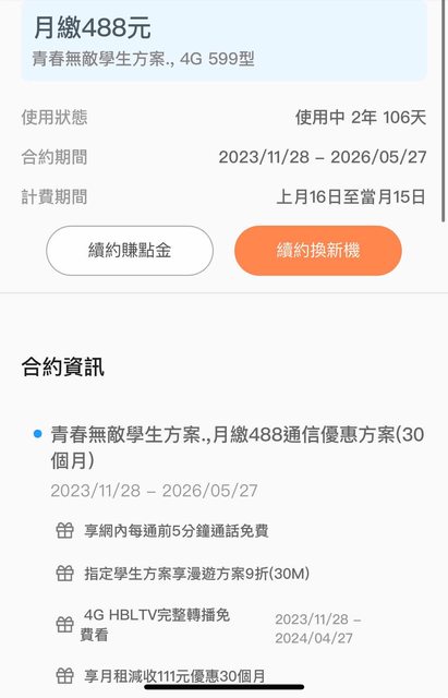 → vn514526 : 約488方案三十個月。 11/30 09:40