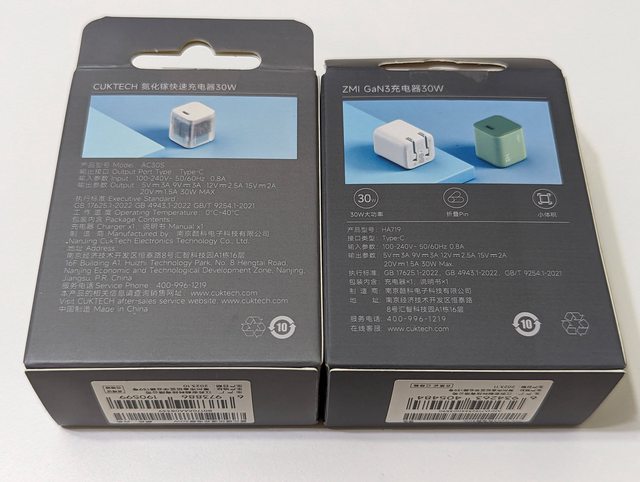 大家晚安 最近淘寶雙11,為了選購充電器,還在版上發了一篇文章 #1bJPuKcX (MobileComm) 最後是把裡面比較便宜的選項,都各買了一顆,所以這篇文章就是很單純,一次要開箱三顆 充電器XD 1.紫米 GaN3 氮化鎵 30W USB-C 充電器 HA719 2.酷態科 氮化鎵 30W USB-C 充電器 會放在一起,是因為酷態科目前就是小米生態鏈當中的製造商,因此紫米的充電頭也是由CU KTECH 代工的,包裝基本上87%像,連邊邊都把LOGO放一起 https://i.imgur.com/PfuF3KU.jpg