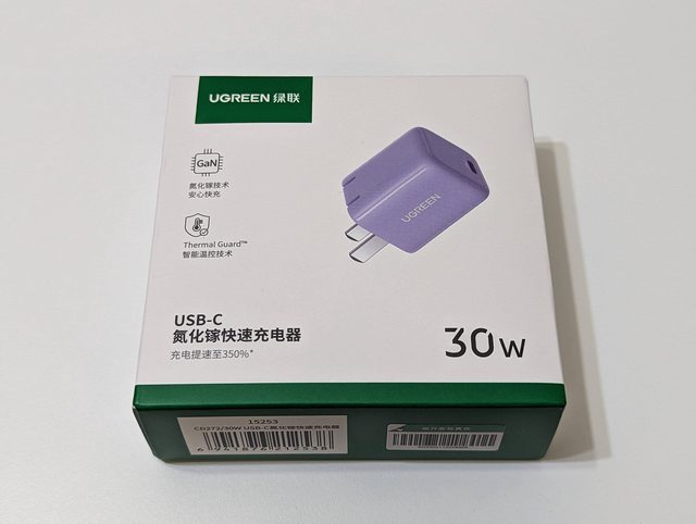 用起來當然都是沒問題,不過兩顆都遇到同一個事情,就是摺疊插頭掰開的時候,到最底部 會有一點點卡卡的,收回去反而沒問題! 3.UGREEN 綠聯 30W GaN 氮化鎵充電器 這顆算是第二代的30W充電頭,綠聯在淘寶天貓上好像已經有第三代了,單純是想說功能差 不多 這次選的是紫色的,因為要給喜歡紫色的家人,外包裝的紫色其實就蠻好看的了 https://i.imgur.com/lIvHa7w.jpg