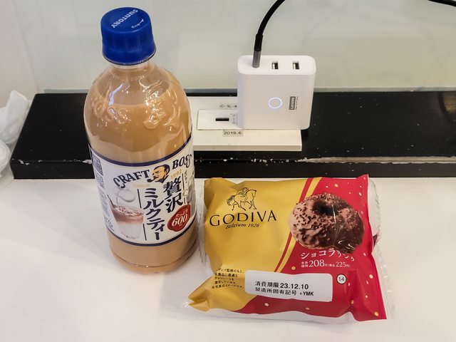 BOSS的奶茶好喝,配GODIVA巧克力甜甜圈太棒了 (這熱量...
