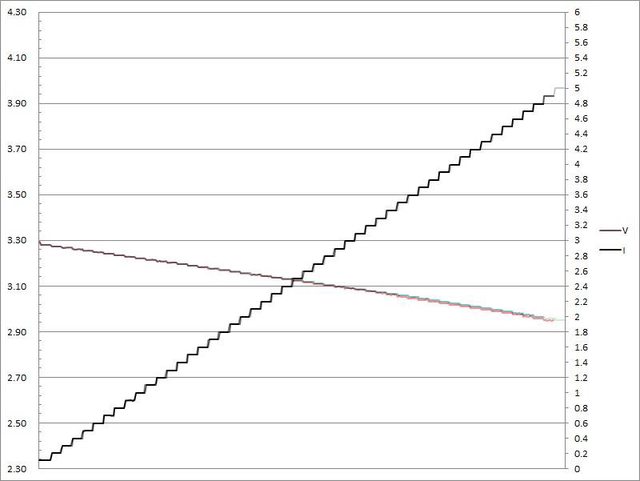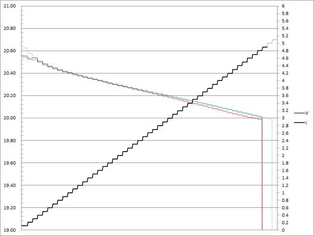 出電流超過3.1A大幅壓降,超過3.2A截止