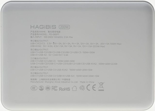標題[心得] HAGiBiS海備思200W五埠GaN充電器PD-085PT