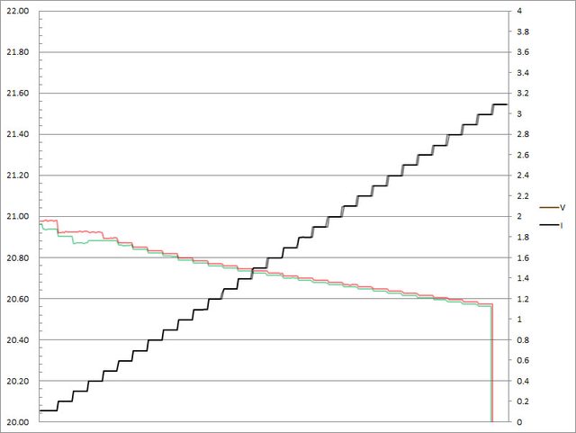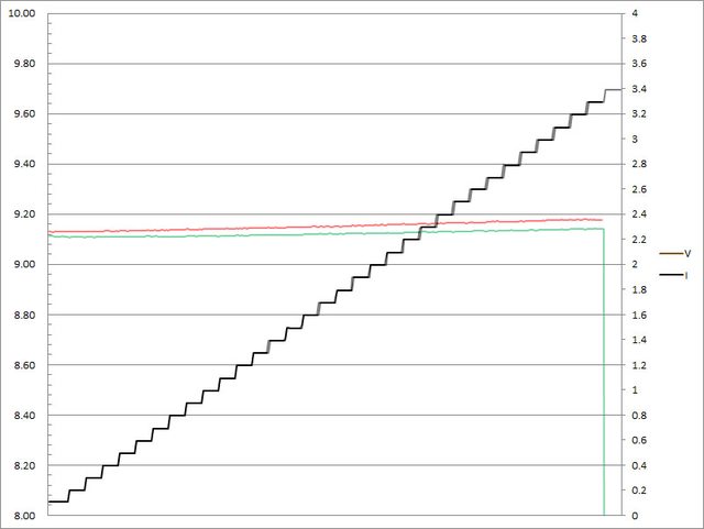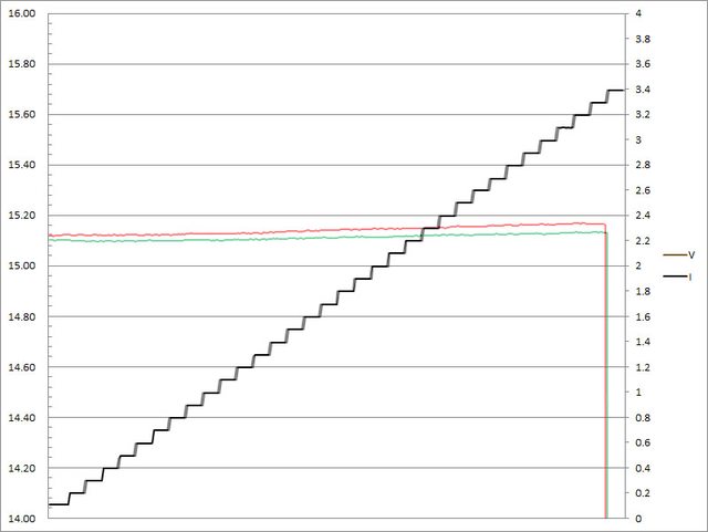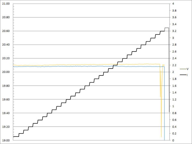 C1輸出電流超過3.3A截止;C2輸出電流超過3.3A大幅壓降,超過3.4A截止