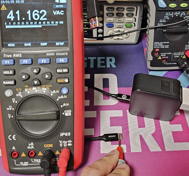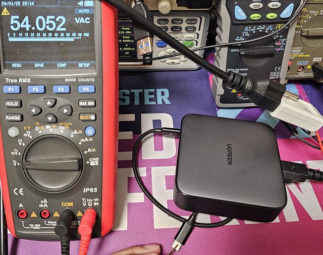 ◆插在正確接地的三孔插座上,Y電容分壓接地,USB-C及USB-A負極/連接器外殼不會帶電
