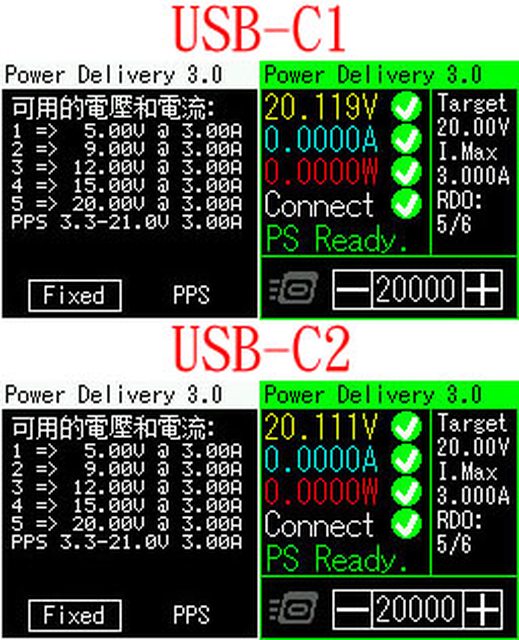 充電器C3/C4輸出:5V/3A、9V/3A、12V/3A、15V/3A、20V/3.25A,PPS 3.3V-21V/3A,最