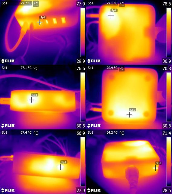 ▼USB-C1及USB-C2二埠總輸出功率201.51W一小時後本體/連接埠的紅外線熱影像圖
