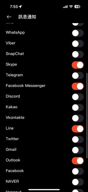 雖然可以選擇通知,但先前只支援微信、QQ等的台灣少用的app,
