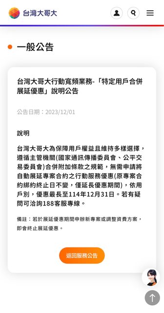 → pda2001 : 能確定這原方案(不限速吃到飽)展延至少到明年底 不 04/07 14:14