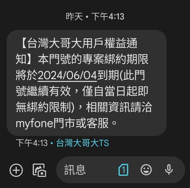 推 kimula01 : 我也是同方案 但沒收到簡訊04/05 09:52
