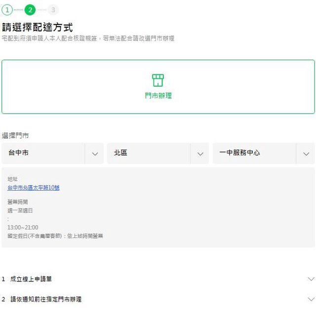 6.選擇就近合適的門市,再按「下一步」,進入下一個畫面。 https://i.imgur.com/JotKdK3.jpeg