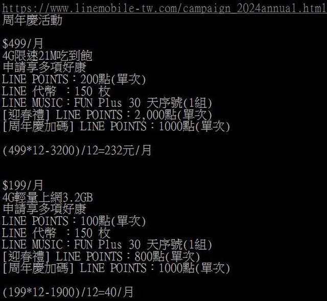 想快跳閱覽的,請善用搜尋功能(Ctrl+ F),請尋找分段標記"A"、"B"、"C"、"D"、"E"。 以下步驟寫得比較細鎖, 是為了方便不常上網的朋友與老人家來了解申辦流程, 也能擴大申辦人群數量,讓大家都能拿到十足的回饋。 如果想快跳閱覽的,請善用搜尋功能(Ctrl+ F),尋找分段標記"A"、"B"、"C"、"D"、"E"。 A.LM $199 輕量方案極大值發揮,是每月倒貼60元請客。 B.加快辦門號速度的秘訣與提前驗證推薦碼是否可用。 C.快速選門號的方法,及轉圈圈插曲與排解。 D.去門市親辦或收宅配後,把新辦門號綁定LINE帳號開通,拿到LP回饋之方法。 E.結語。 ○A.LM $199 輕量方案極大值發揮,是每月倒貼60元請客。 https://i.imgur.com/hXutbTY.jpeg